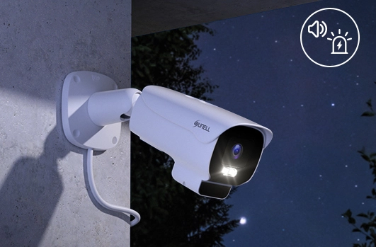 La cámara de disuasión activa le ayuda a llevar la seguridad al siguiente nivel con una detección de disuasión precisa y en tiempo real que distingue a las personas y los vehículos de otros objetivos, y proporciona advertencias sonoras y luminosas.
