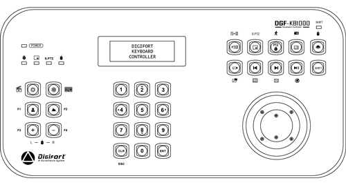 La mesa controladora Digifort DGF-KB1000 fue desarrollada exclusivamente para el Sistema Digifort, lo que le otorga mayor rapidez y facilita toda la operación, y hace posible eliminar el teclado, el mouse y el joystick. El teclado es multiuso; tiene funciones dobles y posee un joystick y un jog dial integrado de velocidad variable, de rotación vertical, horizontal y funciones de PTZ. Sin embargo, las funciones PTZ funcionan solo en equipos que soporten un Joystick por PTZ. Verifique en el enlace Equipos Integrados la compatibilidad con su equipo.